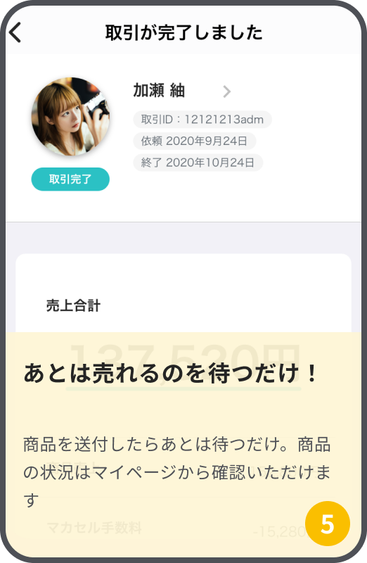 ▼お客様の受取額=依頼した商品の売却額-(フリマアプリ手数料+購入者への送料+マカセラー手数料+運営手数料)